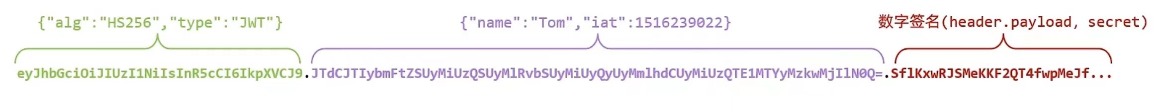 JWT 由三部分组成,每部分之间使用点号.分隔: